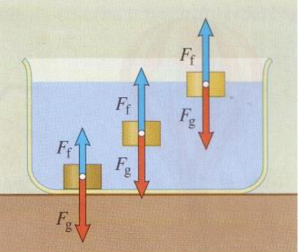 A képen három állapot látható: merülés, lebegés és úszás.